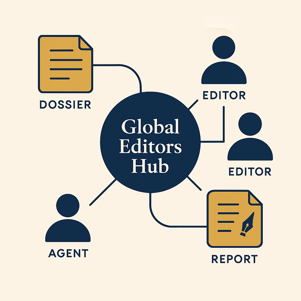 Asimismo, el Global Editors Hub garantiza que cualquier comunicación directa entre editor y agente se realiza bajo estrictos criterios de confidencialidad y mediación profesional. Los agentes que remiten fichas de autor al GEHub han sido previamente verificados y validados conforme a criterios internos de legitimación y solvencia profesional, garantizando un entorno privado, cualificado y seguro para todas las partes.